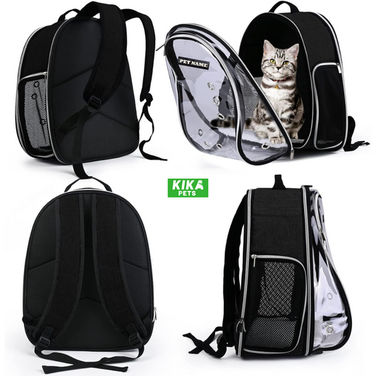 CLEAR Dog Cat Backpack Carrier Bag (Black, for 1- 6 Kgs Pets) - KIKA PETS